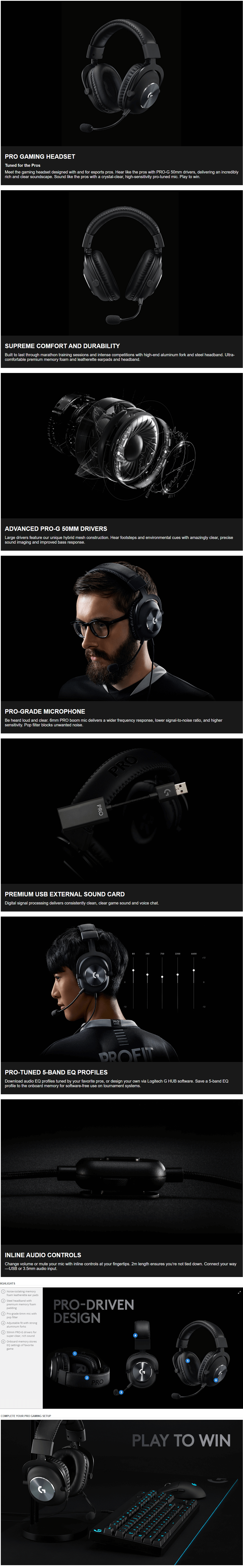 Logitech G Pro Gaming Headset with Pro Grade Mic for Pc, PC VR, Mac, Xbox One, Playstation 4, Nintendo Switch